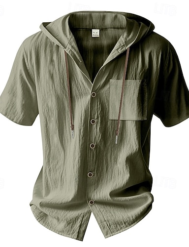 Herre Skjorte Linskjorte Popover skjorte Sommerskjorte Strand Klær Skjorte med hette Helfarge Feriereise Gate Hvit Lysegrønn Blå Grønn Langermet Med hette Sommer Vår Klær