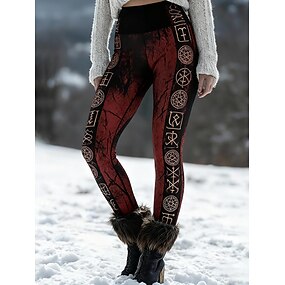 Dame Viking Leggings Koselige leggings Ferie Årgang Etnisk stil Full lengde Høy Midje Grafisk Dyr Printer Bekvem Elastisk Avslappet Daglig utendørs Svart Vår Høst Vinter Slank Fasong
