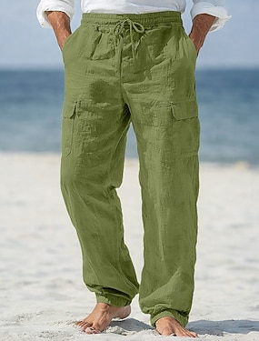 Herre Linbukser Bukser Sommerbukser Posete bukser Strandbukser Elastisk midje Snorer Rett ben عادي Komfort Pustende Full lengde Avslappet Daglig Ferie Ferie Grunnleggende Hvit Militærgrønn