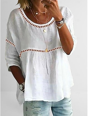 Dame Blondeskjorte Øyetopp Lange bomullstopper Hvit bomullstopp Blonde Lapper عادي Grunnleggende 3/4 ermer Rund hals Vanlige topper Avslappet Hvit Rosa Sommer Høst
