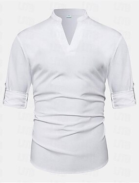 Herre Skjorte Linskjorte Sommerskjorte Strandskjorte عادي Feriereise Hawaiisk Hvit Langermet V-hals Vår & Vinter Klær Knapp ned