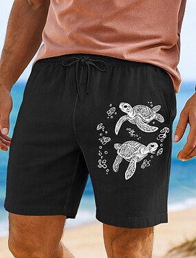 Herre Kokosnøttre Tropiske planter Shorts Strandshorts Bomullsshorts Medium Midje Hawaiisk Fritid Daglig Strand Ferie Sidelommer Elastisk snøring i midjen Designer Klær