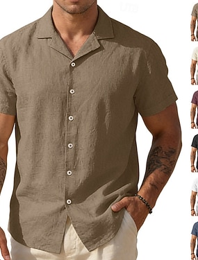 Herre Skjorte Linskjorte Sommerskjorte Strandskjorte Skjorte med knapper Kokosnøttre Feriereise Avslappet Svart Hvit Lysegrønn Rosa Kortermet Aftæpning Sommer Klær
