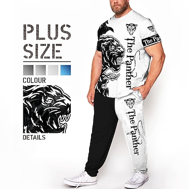 Herre Dyr Løve 3D-utskrift 2stk T-skjorter sett Matchende sett Kortermet Lange bukser Crew-hals Mote Gatemote Fritid utendørs Daglig Sport 3D-utskrift Vår sommer Hvit Blå Svart-Hvit