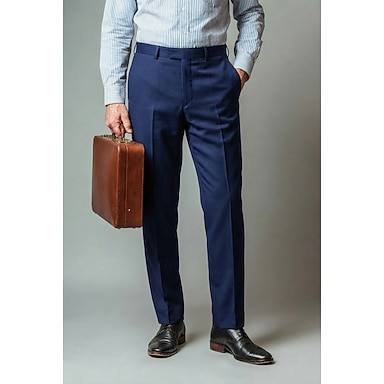 Menn Lin i bomull Dressbukser Formelt Himmelblå Beige Helfarge Standard passform Lang Uelastisk