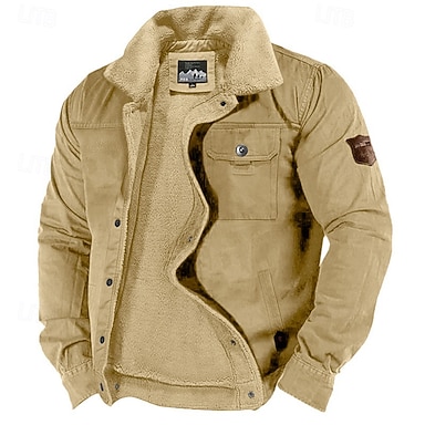 Herre Fleece-jakke Cargo jakke Chore jakke Formell Hjem Vindtett jakke Holdbar Lomme Fleece krage Høst Vinter Helfarge Aktiv Årgang Krage Normal Navyblå Mørkegrønn Kakifarget Jakker