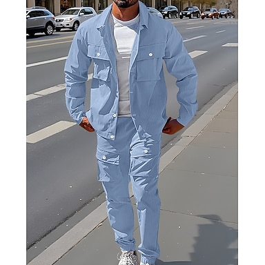 Herre Lett jakke Cargo jakke Uformell jakke Sett Feriereise Daglig Pustende Jacquard Lomme Vår Høst عادي Mote Klassisk Knaphul Normal Svart Lysegrønn Kakifarget Lyseblå Jakker