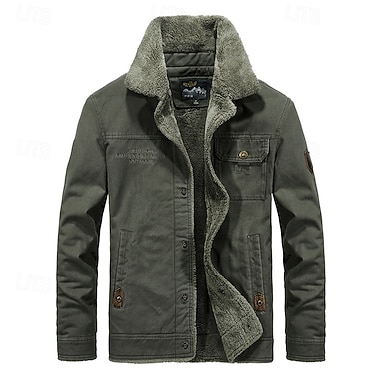 Herre Vinterjakke Fleece-jakke Uformell jakke Daglig Feriereise Hold Varm Lomme Fleece Høst vinter عادي Mote Gatemote Knaphul Normal Kakifarget Militærgrønn Mørkeblå Jakker