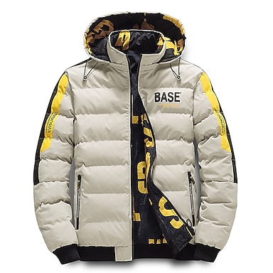 Herre Pufferjakke Hettegenser frakk Polstret Glidelås Lomme Trykt mønster Sport & Utendørs Normal Utendørs Fritid / hverdag Vinter Bokstaver Svart Gul Rød Kakifarget Pufferjakke