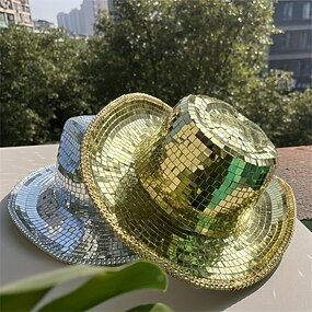 Discokule cowboyhatt speilmosaikk cowgirlhatt, skinnende reflekterende festhatt til festival, rave, sommerdansefest, kostymetilbehør