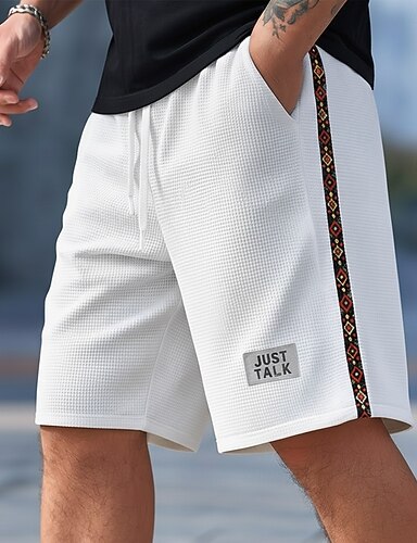 Herre Geometrisk Etnisk Vaffelshorts Svette shorts Casual shorts Medium Midje Fashion Casual Feriereise Jogging Trening Med Tekstur Elastisk snøring i midjen Shorts med lommer Designer Klær