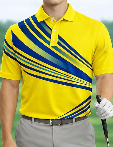 Herre Geometrisk Golf Sports poloskjorter Kortermet Poloskjorter Skjorter med krage Fritid treningsklær Knapper Vår sommer Blå Hvit Gul