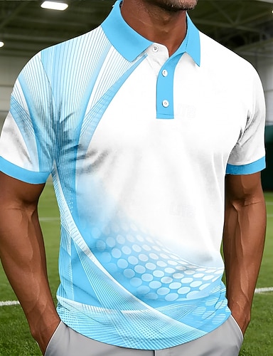 Herre Geometrisk Golf Sports poloskjorter Kortermet Poloskjorter Skjorter med krage Fritid treningsklær Dagligdagstøy 3D-utskrift Knapper Sommer Vår Blå Grønn Svart