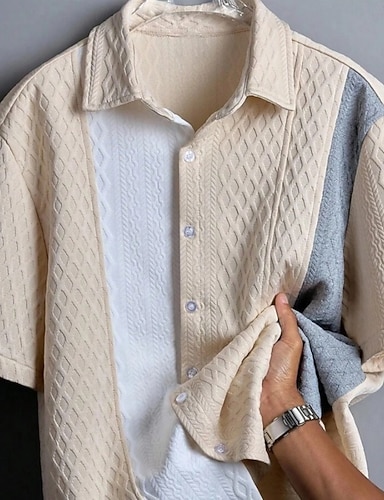 Herre Skjorte Uformell skjorte Skjorte med knapper Jacquard-skjorte Blå Svart Rosa Aprikos Kortermet Fargeblokk Skjortekrage Avslappet Daglig Lomme foran Klær Elegant Mote Fritid