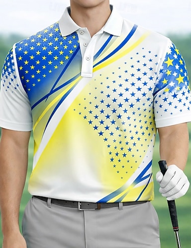 4. juli 2026 250. Herre Amerikansk amerikansk flagg Poloskjorter Kortermet Poloskjorter Skjorter med krage Fritid Friluftslklær Ferie Festivalantrekk Knapper Sommer Vår Blå Rød Grå