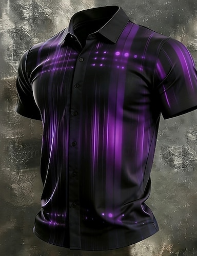 Herre Geometrisk Stripet Gradientfarge Skjorte Skjorte med knapper Camp skjorte Kortermet Business Casual Gateklær Feriereise Sommer Vår cubansk krage 3D-utskrift Blå Lilla Grønn Kakifarget