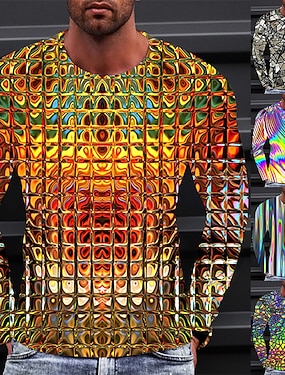 Herre Grafisk Gradert metallisk skjorte T skjorte Langermet T skjorte 3D-utskrift Crew-hals Skjorte Årgang Mote Designer utendørs Daglig Sport Blå 1 2 Vår & Vinter Klær S M L XL 2XL 3XL 4XL