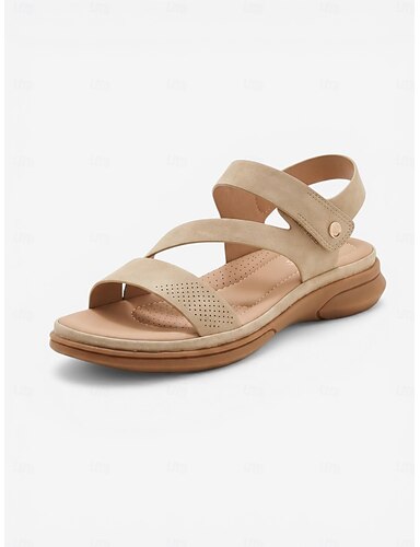 Damesandaler med mandelbuestøtte – justerbare komforttøfler med borrelås, polstrede slip-on-sandaler for turgåing, innendørs utendørs &daglig bruk