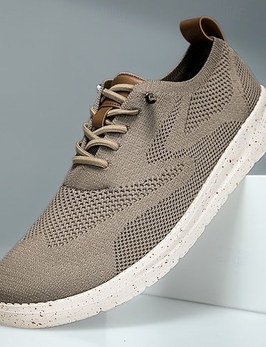 Herre khaki strikkede casual joggesko med snøring, pustende, lette og komfortable tursko for daglig bruk, reiser, pendling, friluftsliv, helgeaktiviteter og sport, avslappet stil