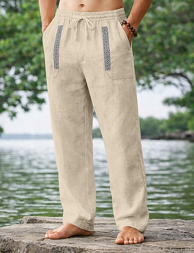 Herre Linbukser Bukser Sommerbukser Posete bukser Strandbukser Snorer Lomme عادي Komfort Pustende Full lengde Daglig Hjem Arbeid Ferie Stilfull Hvit Kakifarget Uelastisk