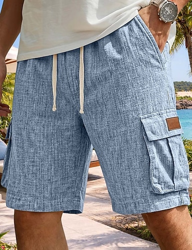Herre Cargoshorts Lin Shorts Sommershorts Strandshorts Snorer Elastisk midje Multi lomme عادي Komfort Pustende Knelengde Daglig utendørs Ferie Ferie Mote Blå Svart Uelastisk