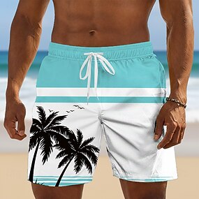 Herre Kokosnøttre Stripet Tropiske planter Badeshorts Surfeshorts Medium Midje Hawaiisk Strandferie Sidelommer Mesh fôr Elastisk snøring i midjen Designer Klær