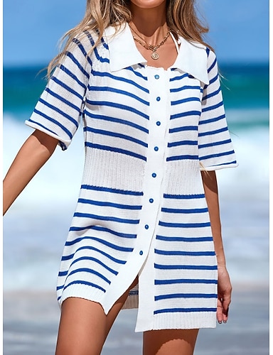 Dame Mini kjole Kjole med A-linje Ferie Fritid utendørs Ut på byen Normal Stripe Halvlange ermer Aftæpning Blå Sommer Vår Høst