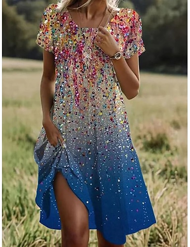 Dame Mini kjole Uformell kjole T skjortekjole Solkjole Kjole med A-linje Stilfull Fritid Strand Normal Nyanse Blomstret Grafisk Kortermet Crew-hals Øsehals Dusty Blue Lyseblå Sommer Vår