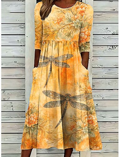 Dame Midikjole Skiftkjole Ferie Fritid Bohem Normal Blomstret Grafisk Halvlange ermer Crew-hals Blå Gul Rosa Lilla Sommer Vår
