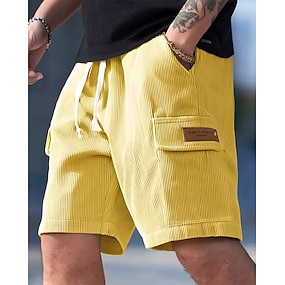 Herre Cargoshorts Sommershorts Casual shorts Corduroy shorts Elastisk midje Snorer Multi lomme عادي Komfort Pustende Kort utendørs Feriereise Sport Fritid Svart Gul