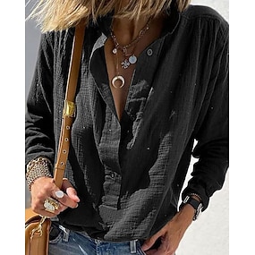 Dame Skjorte Bluse Imitert bomullslin Knapper عادي Årgang Stilfull Langermet V-hals Vanlige topper Ferie Ut på byen Blå Svart Rosa Fuksia Grønn Sommer Vår