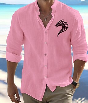 Herre Skjorte Strandskjorte Skjorte med knapper symbol utendørs Feriereise Svart Hvit Rosa Grønn Langermet Opprett krage Vår & Vinter Klær Trykt mønster