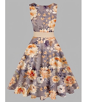 kvinners vintage elegante vintage te kjoler midikjole daglig date rynket trykk blomster med rund hals ermeløs slank sommer våren 2023 gul blå s m l xl