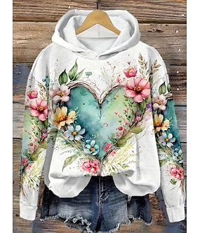Dame Hoodie Pullover Sweatshirt Oversized Langermet Casual Grafisk Blomster Varm Aktiv Hette Vanlige Topp Street Dagligbruk Trykk Hvit Rosa Lilla Grønn Khaki Vår Høst Vinter