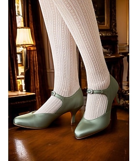 kvinners elegante sateng Mary Jane hæler - komfortable mellomhæl kjolesko med justerbar stropp for bryllup, fester og formelle arrangementer