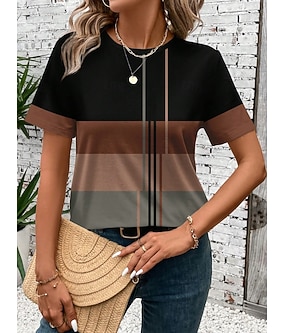 Dame T skjorte Trykt mønster Stripet Fritid Kortermet Rund hals Vanlige topper Daglig Svart Sommer