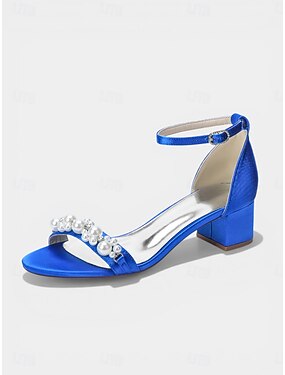 Damesandaler med kongeblå sateng og blokkhæl og strassstropper, elegante hæler med åpen tå og ankelreim til fester og bryllup &kveldsarrangementer