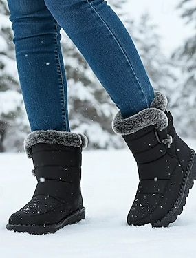 vanntette vintersnøstøvler for kvinner - varme, sklisikre utendørsstøvler med pelsfôr for kaldt vær