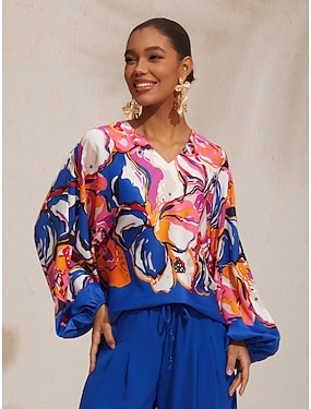 Dame Skjorte Knapper Trykt mønster Blomstret Grafisk Elegant Stilfull Grunnleggende Langermet Skjortekrage Vanlige topper Daglig Arbeid Blå Gul Vår Høst