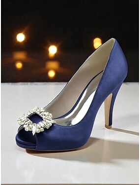blå sateng peep-toe hæler med krystallutsmykning – luksuriøse bryllups- og ballsko for kvinner