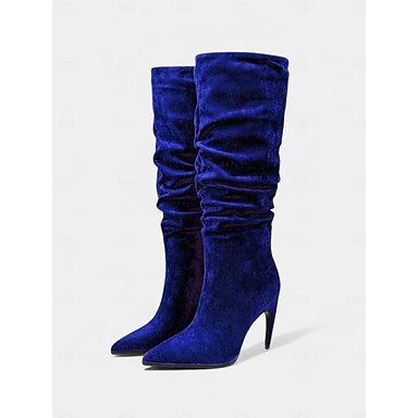 kvinners kongeblå fløyelslårhøye støvletter med stiletthæler – dristig og sofistikert over-kne-design for kveldsglamour