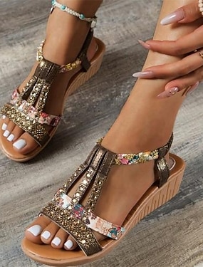 glitrende t-remsandaler for kvinner – komfortable og stilige kilesandaler med rhinestone-aksenter, flott for uformelle utflukter, sommerfester og spesielle anledninger