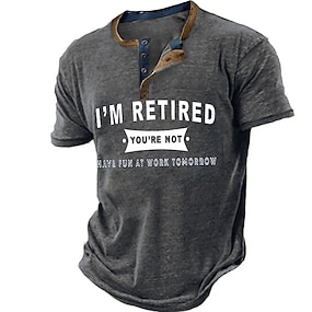 Menns kortermete Henley T-skjorte morsom 'Jeg er pensjonert du er ikke ha det gøy på jobb i morgen' arbeids- og kontorhumor grafisk T-skjorte