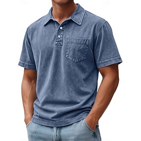 Herre Poloskjorter 100% bomullssyre-vaskeskjorte Avslappet Ferie Knaphul Kortermet Mote Grunnleggende عادي Årgang Nedtrykt Sommer Vår Alle årstider Normal Blå Svart Navyblå Grønn kaffe Poloskjorter