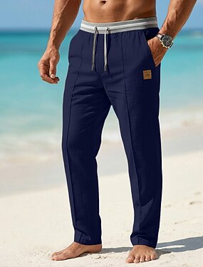 Herre Linbukser Bukser Dressbukser Sommerbukser Strandbukser Rett ben عادي Komfort utendørs Avslappet Daglig Gatemote Stilfull Hvit Navyblå