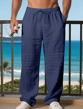 Herre Linbukser Bukser Sommerbukser Posete bukser Strandbukser Snorer Elastisk midje Rett ben عادي Komfort Pustende Full lengde Daglig Ferie Strand Ferie Mote Hvit Navyblå