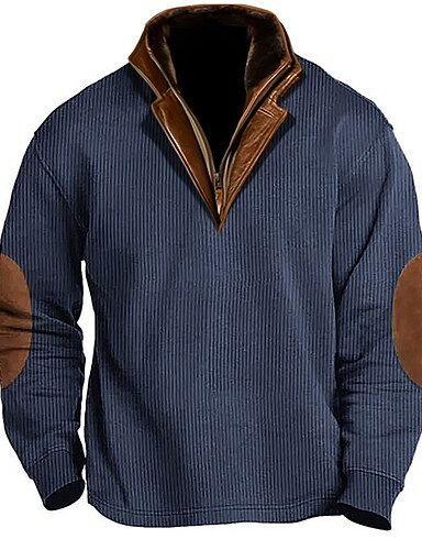 Herre Genser Kordfløyel Navyblå Brun Militærgrønn Beige kaffe Quarter Zip Fargeblokk Lapper Feriereise Gate Ut på byen Kordfløyel Mote Designer Grunnleggende Vår & Vinter Klær Gensere Gensere