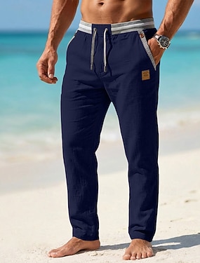 Herre Linbukser Bukser Dressbukser Sommerbukser Strandbukser Rett ben عادي Komfort utendørs Avslappet Daglig Gatemote Stilfull Hvit Navyblå