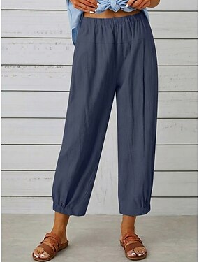 Dame Linbukser i bomull Bukser Uformelle bukser Sommerbukser Ferie Mote Gatemote Ankel-lengde Høy Midje عادي Lomme Elastisk midje Komfort Bekvem Uelastisk Daglig Feriereise Gate Svart Navyblå Bl