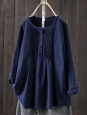 Dame Bluse Imitert bomullslin Rynket Knapper عادي Moderne Fritid Langermet Crew-hals Vanlige topper Daglig Ut på byen Hvit Gul Rosa Navyblå Sommer
